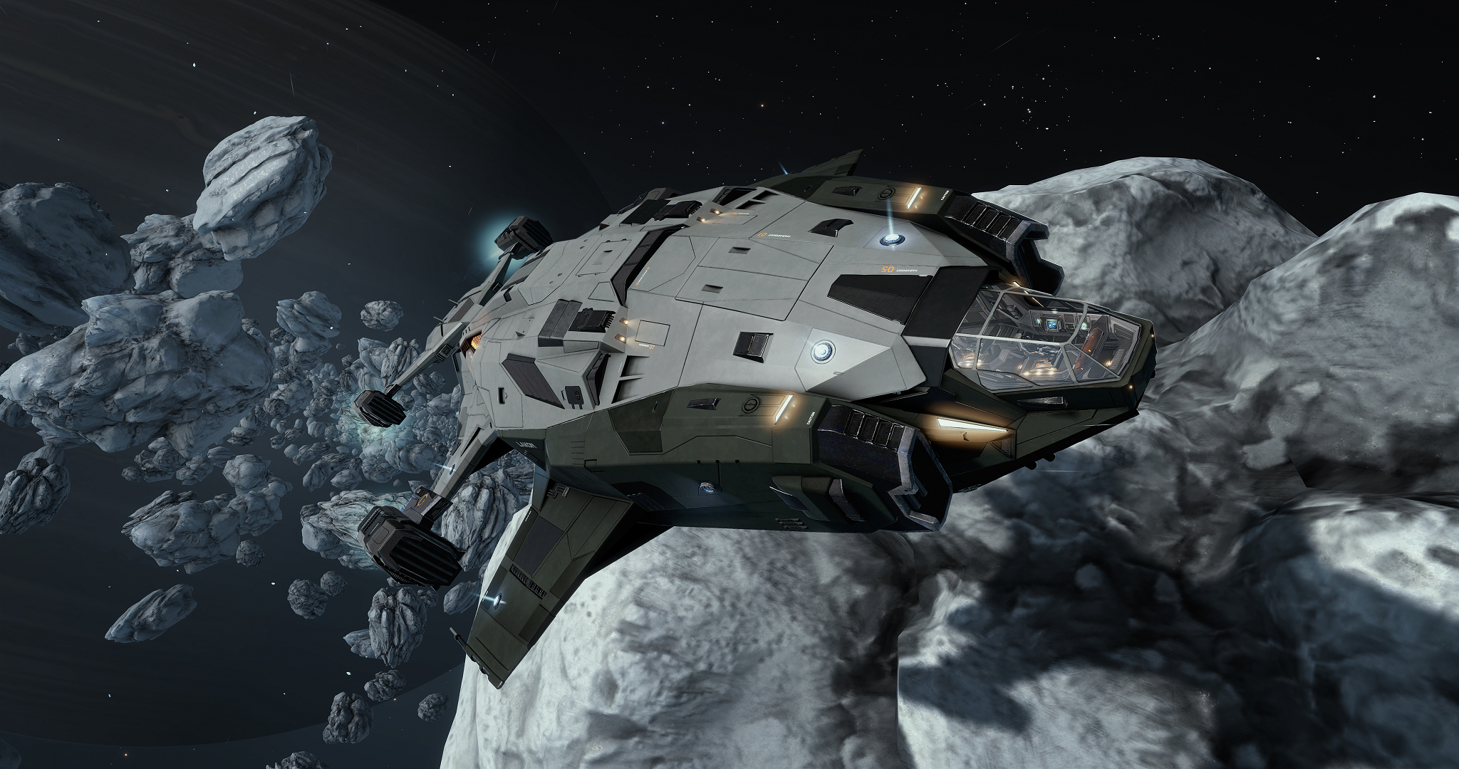 The Challenger's hardpoints are arranged almost identically to the Chieftain, albeit it exchanges the top-most Class 3 hardpoint for two Class 2 hardpoints that are located directly behind the forward landing gear. Utility slots are well-distributed and have minimal obstructions, with two on top roughly in the middle of the craft, and two on the underside slightly further back. Like the Chieftain, the Challenger has a second seat for Multicrew.