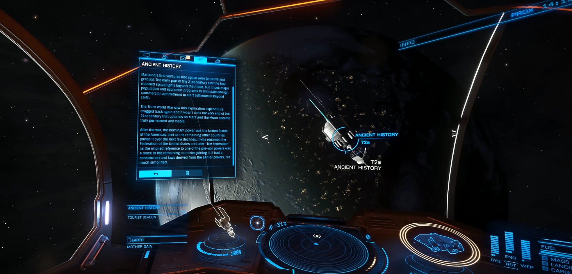 Significant discoveries were made in the year 2100. Ancient life was discovered on Mars, and more importantly, the existence of Hyperspace was confirmed. As humans started to dominate the Sol System, Frame Shift Drives were developed and put on probes which were sent to all nearby systems.