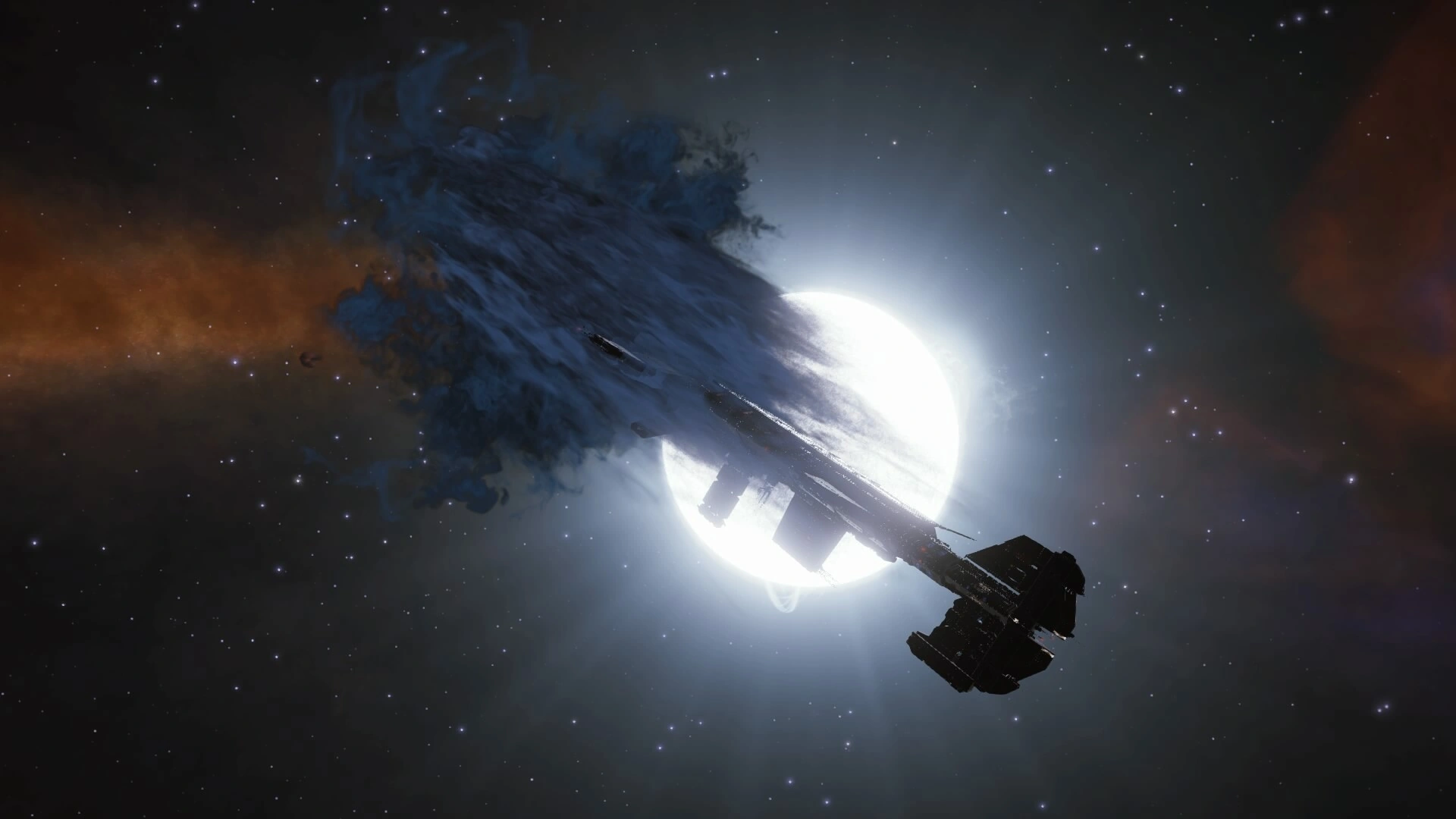 A Fleet Carrier emerging from hyperspace