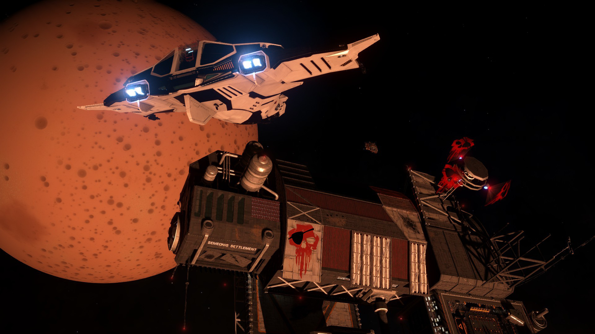Outposts, sometimes called Orbital Outposts to distinguish them from ground-based facilities like Surface Ports and Settlements, are relatively small and modular space stations. They differ significantly from the vastly larger Starports and Asteroid Bases, which are usually the major hubs within a system. Outposts have between three and five Landing Pads, no docking support for large ships, and minimal security emplacements and patrols. They also lack any rotating habitation structures to simulate gravity for occupants, and docked ships are held in place magnetically.