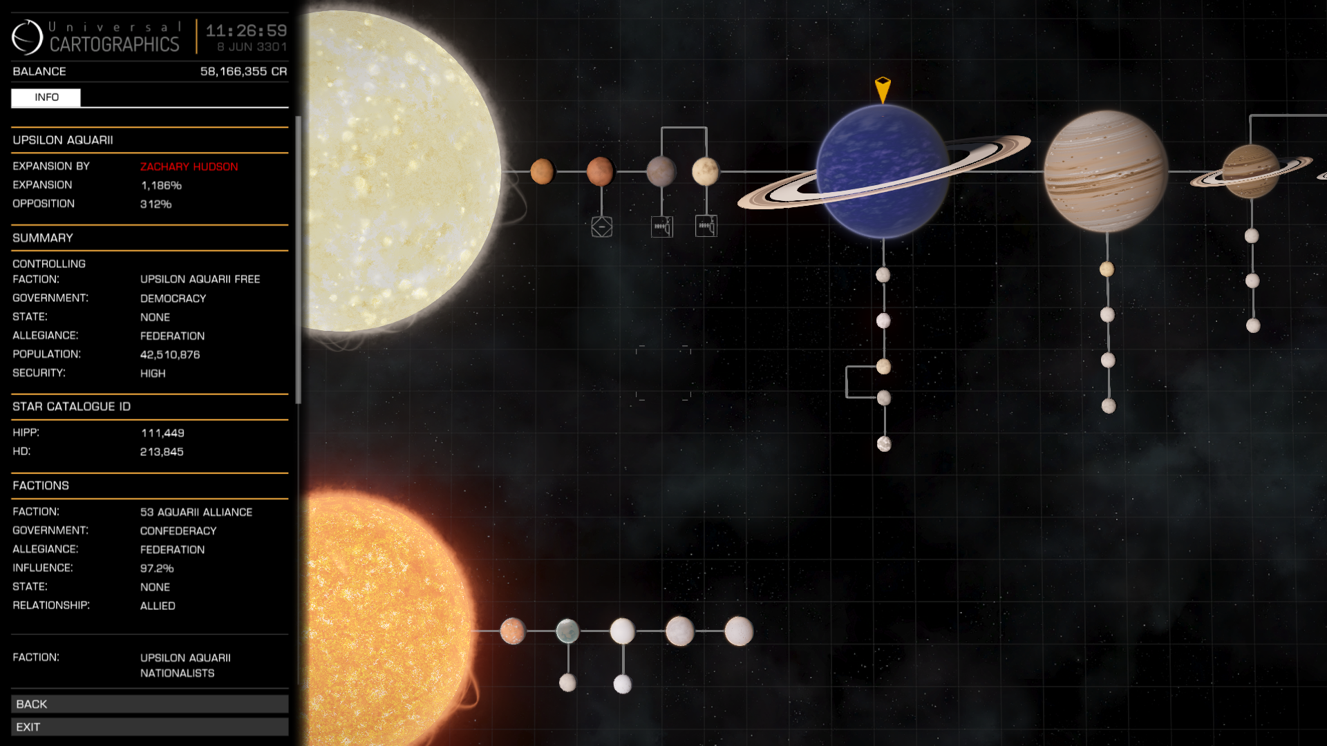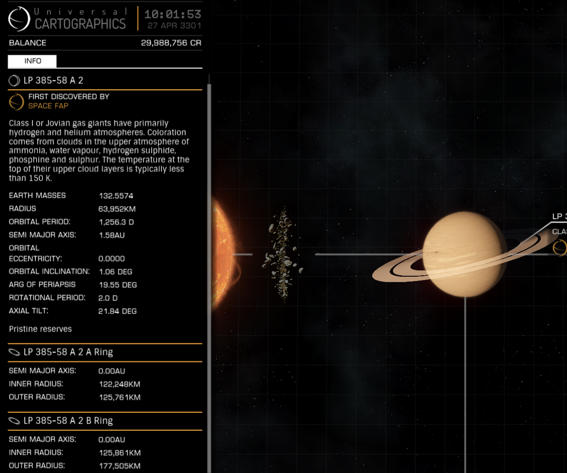 A planet with rings and "pristine reserves" as shown in System Map view