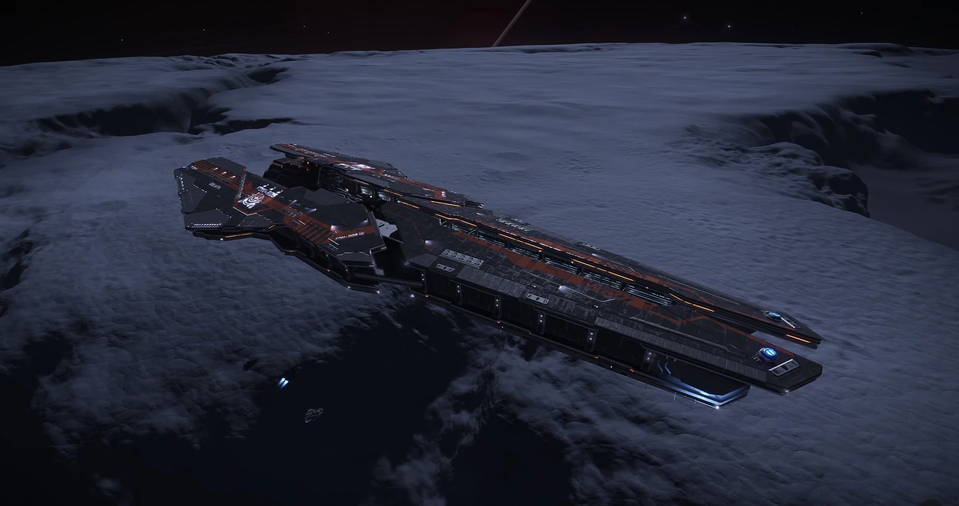 Capital Ships are large jump-capable ships that cannot be directly piloted by the player. Capital Ship owners can customise their vessels' available services and Livery.