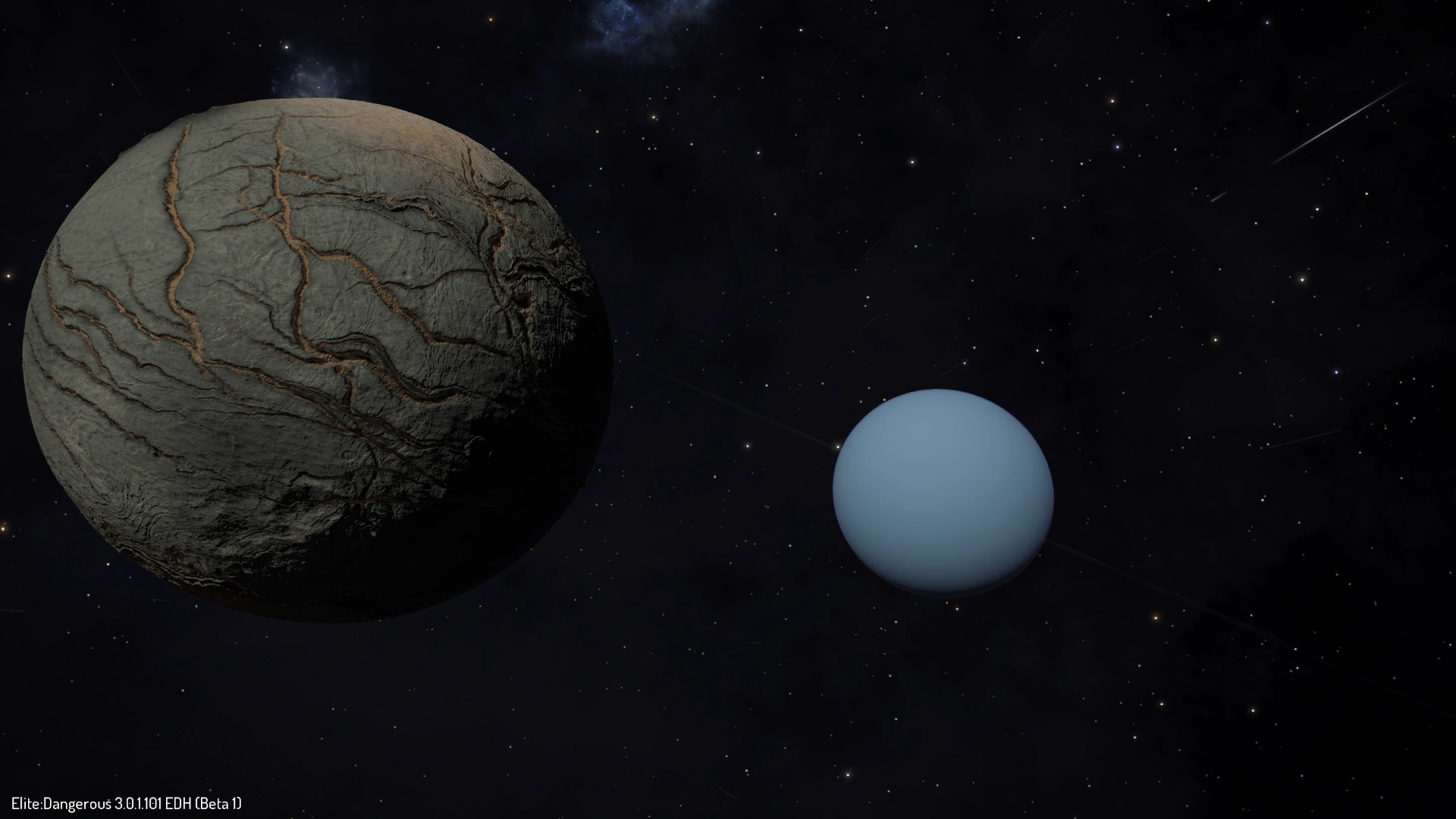 Ariel is the 12th moon of Uranus. It has craters and long rift valleys across the entire surface. The surface is believed to consist of half water ice and the rest rocky material. It was first discovered by William Lassell on October 24, 1851.