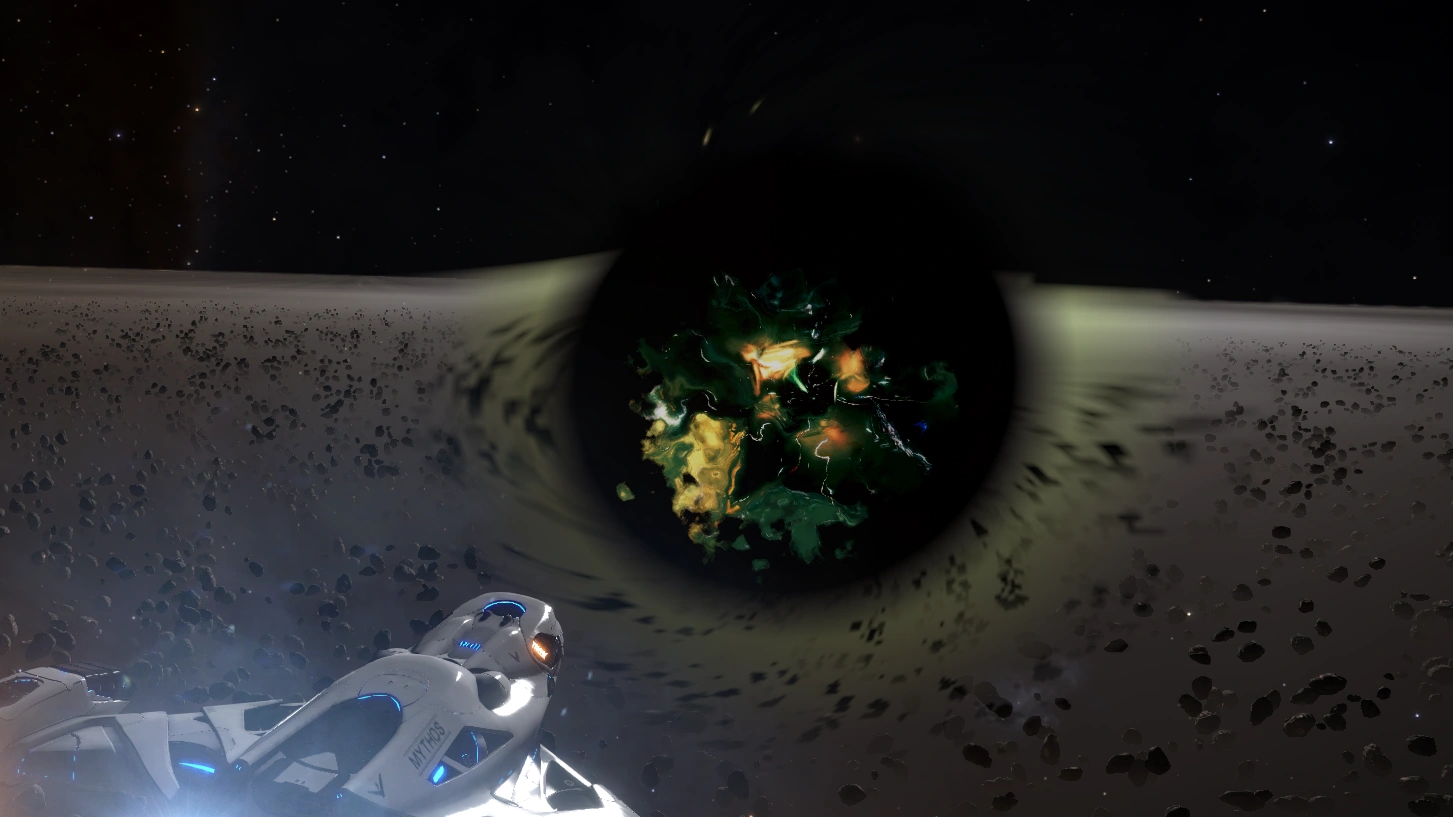 As of mid-August 3308, HIP 22460 has been declared a Hazardous Environment, having been conquered by the Thargoids who aggressively track, persue and destroy any human vessel in the system. The Proteus Wave (still active and visible from high-orbit around moon 10 b) has become the site of a major, unidentified anomaly. Guardian technology brought into the system rapidly degrades to the point of non-functionality, while human systems appear to glitch constantly in either Supercruise or normal space. Numerous debris fields from the massacre of the human fleet dot the system, along with the wrecks of megaships and Federal and Imperial capital ships. Salvation has disappeared (presumed dead) and Azimuth Biotech has confirmed all engineers of the Proteus Wave have been slain. The superpowers and Sirius have been focused on the withdrawal of their forces and there is no longer a united front against the Thargoids, leading many to speculate the attempt to end the Second Thargoid War has instead escalated it to new heights.