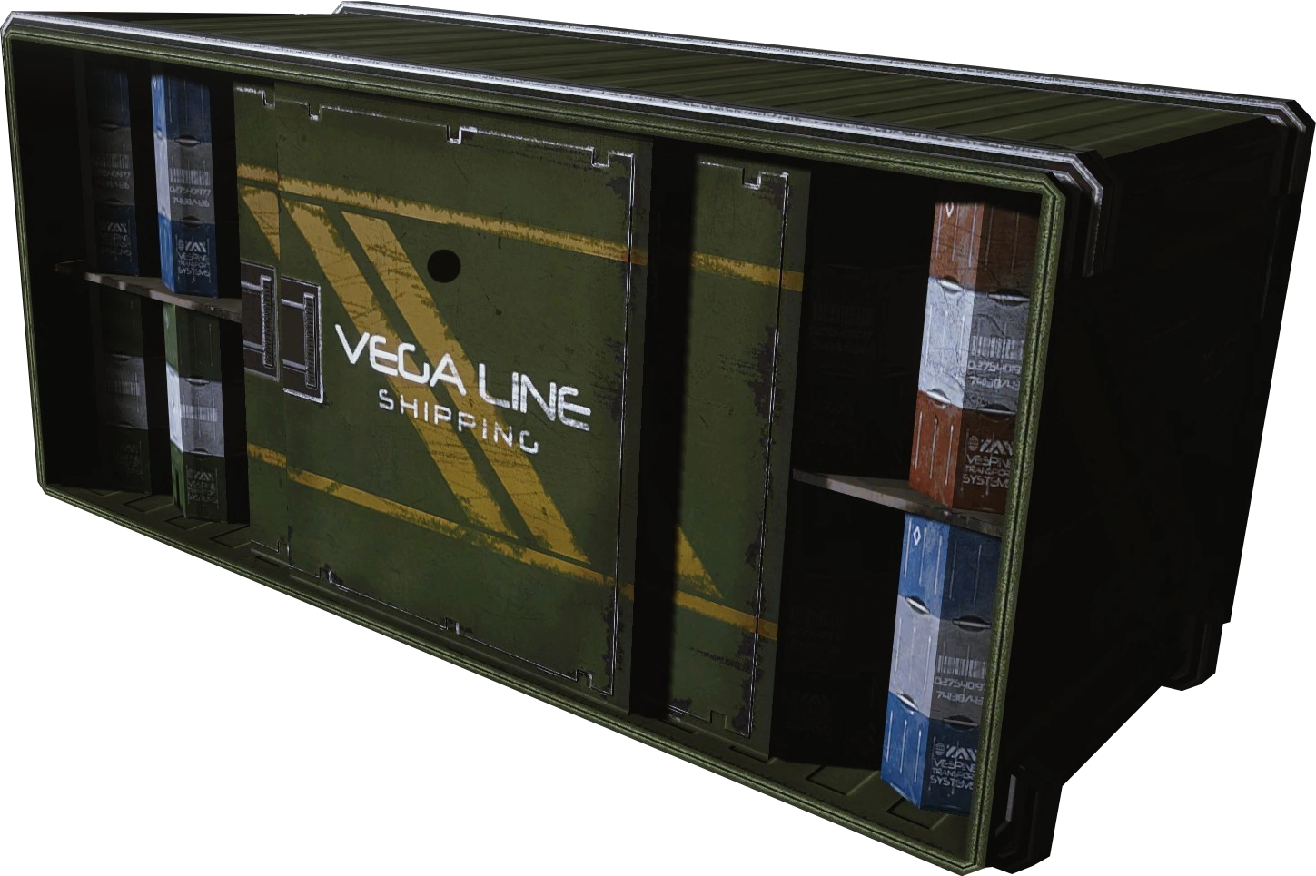 Vega Line Shipping is a freight transport corporation that provides its services throughout the galaxy. Its logo can be seen on shipping containers holding various Cargo Canisters.