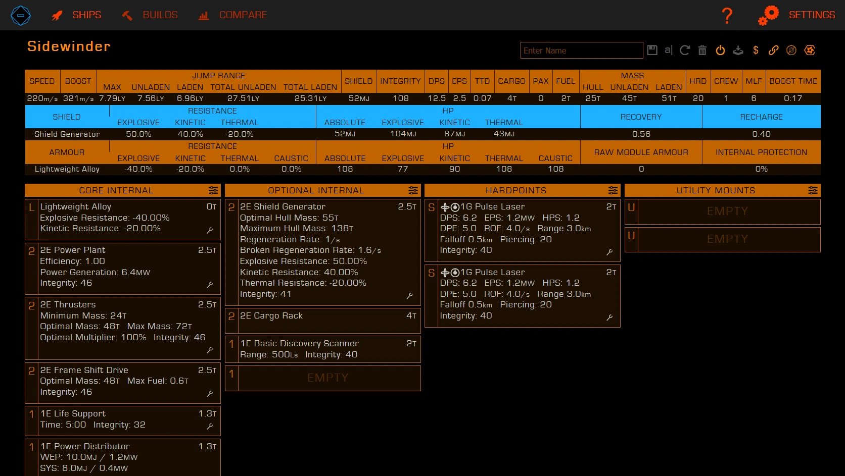 查詢飛船資訊,類比配裝用。 同Coriolis,部分數據較Coriolis準確。