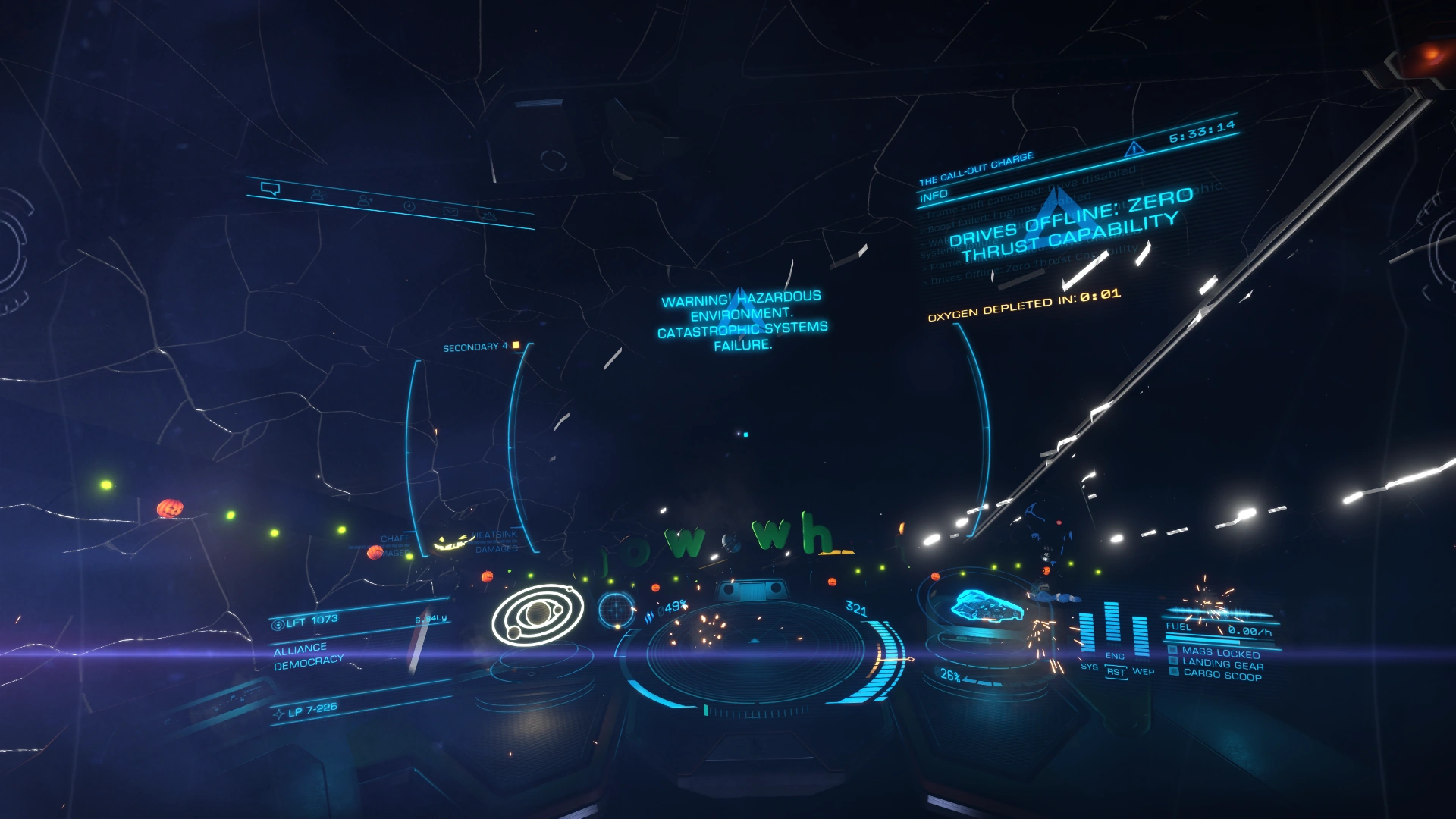 若駕駛艙蓋玻璃完全破裂,所有顯示資訊都會消失(如飛彈依舊鎖定目標,輔助瞄準武器依舊會自動追蹤),但已不再對駕駛員顯示。所有駕駛助理語音提示都會變得較為含糊低沉。更糟糕的是,進入超巡的重力逃逸方向指示和被攔截時的逃脫方向提示也不會顯示。